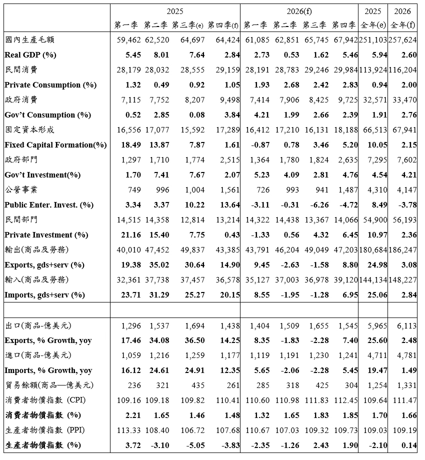 【總體經濟預測】2026台灣總體經濟預測