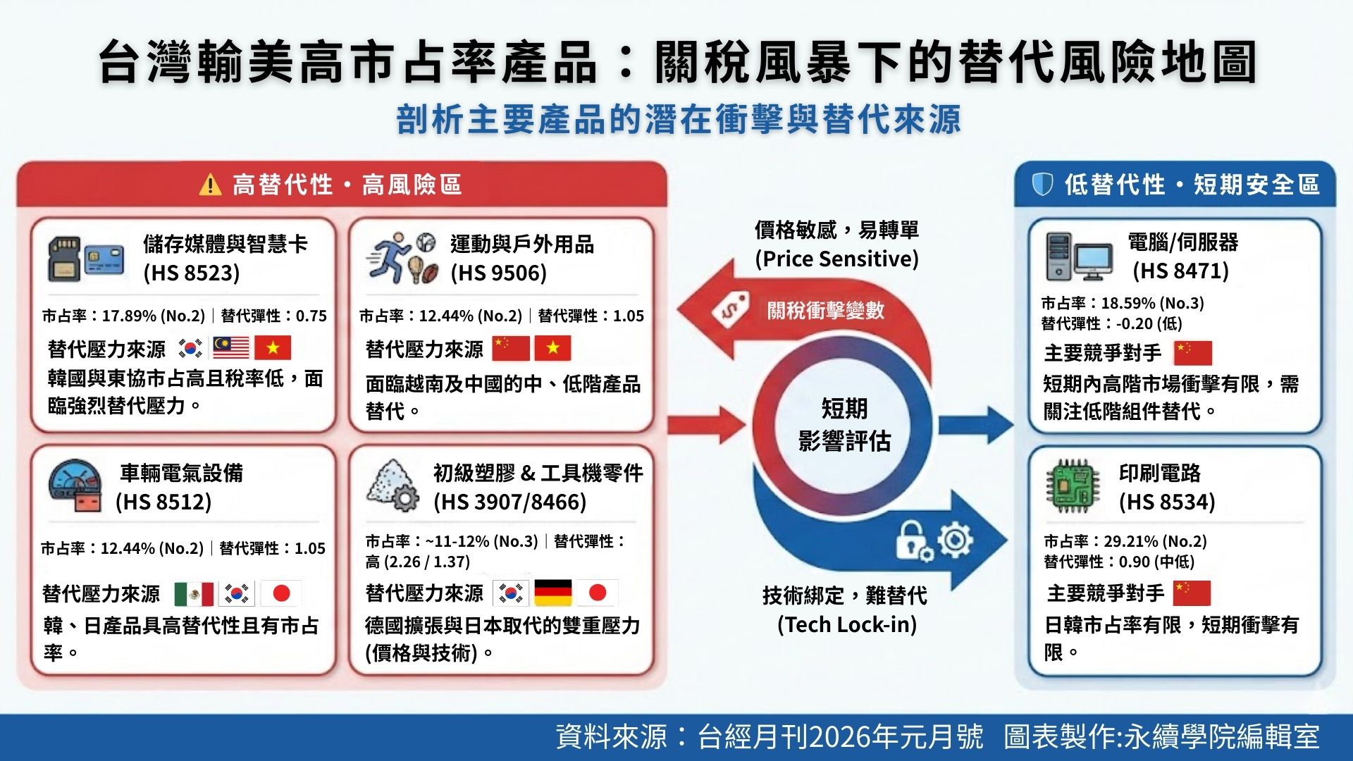 📌產業戰略邏輯必將改寫 高替代產業須加速轉型與避險,低替代產業則需深化技術與客戶綁定。關稅戰將改寫台灣產業競爭邏輯。