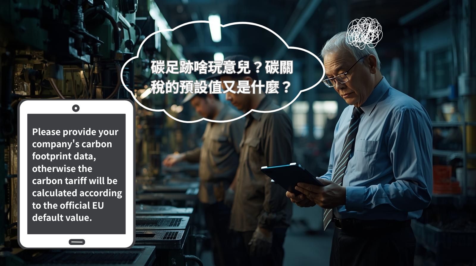 在台南仁德的一家中型螺絲工廠裡,老闆林桑正看著來自歐洲客戶的郵件,神情凝重。信上寫著:「自2026年起,出口至歐盟的螺絲產品均須提供碳足跡數據,否則將依照歐盟官方預設值計算碳關稅。」 這看似一封普通的Procurement Notice,卻像一記重拳打在林桑心上。