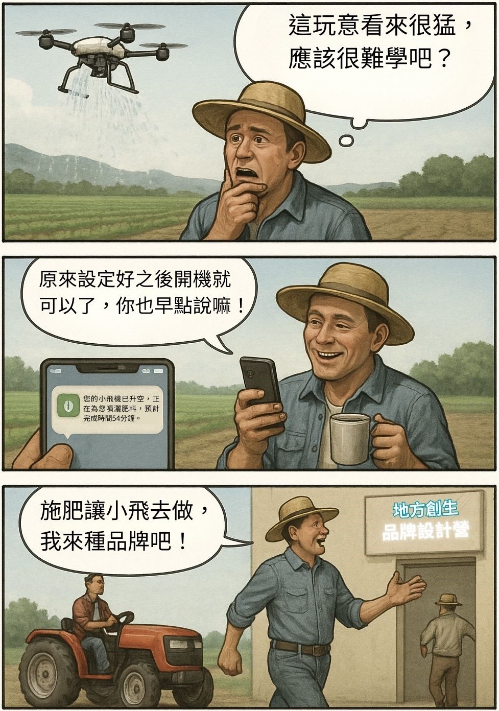 破解迷思:轉型途徑很多,而淡化現有作業流程中的「苦點」,才是最甜蜜的升級方式。就從台灣農業案例來看,傳統茶葉採收機其實只要搭配感測器與簡單的工業電腦,就能記錄作業路徑、時間、產量。這對茶農來說,操作模式並沒有發生改變,只要「會開機」就能上手。這種「人機協作」模式,不是要淘汰既有經驗,而是賦予傳統機具新的「大腦」。