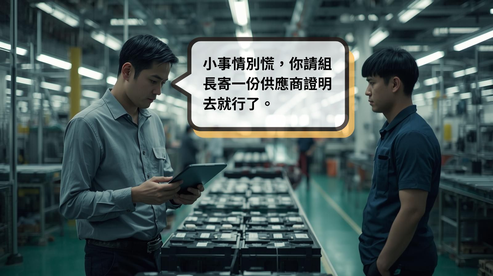 製造商最初判斷,這應該只是一般的行政程序延誤,補一份供應商聲明就能解決。但隨著反覆溝通,問題愈來愈清楚,對方要的不是一張聲明,而是一整套能被查核、可被追溯的資料。幾乎同一時間,出口美國的訂單也出現變數,原可以適用稅務優惠的產品,因為材料來源說明不清而被暫緩核准。