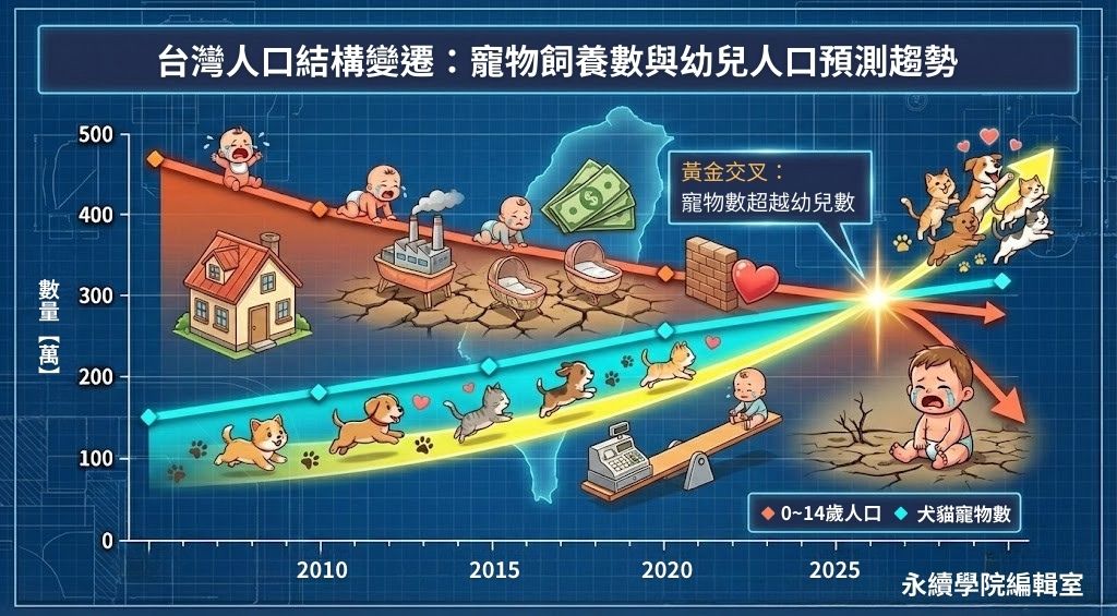 📌 毛孩正在接手家庭預算 少子化翻轉家庭結構,犬貓數量已超越幼年人口,寵物從陪伴角色,正式成為穩定且持續擴大的家庭消費核心。