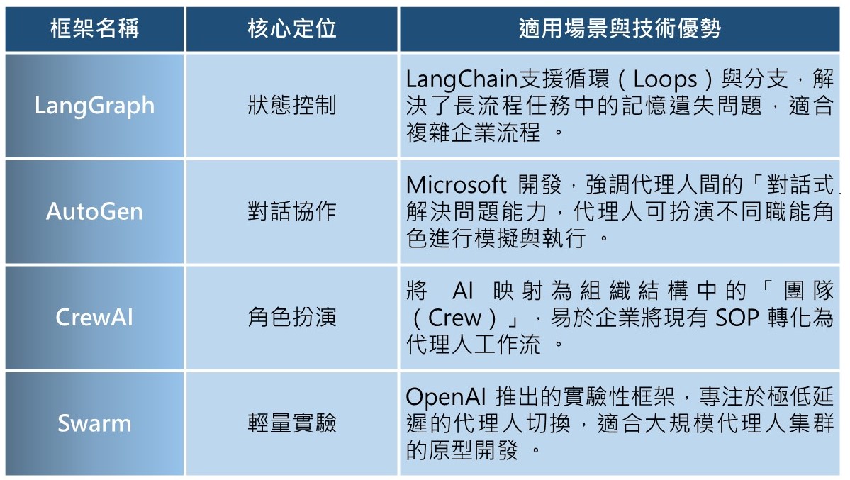 表 1:2026 年主流 Agentic AI 開發框架比較